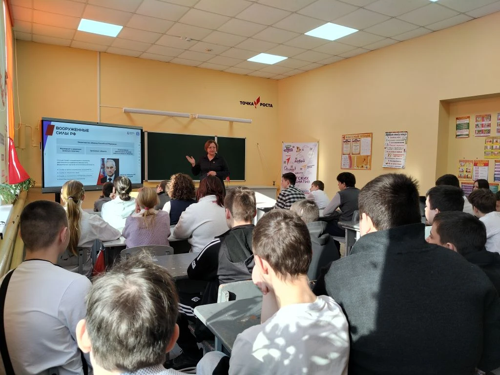 «Сегодня для учащихся 5–11‑х классов прошла интерактивная лекция «Герои на защите Родины». Мероприятие было направлено на формирование у школьников представления о героизме военнослужащих, защищающих страну, и воспитание патриотизма.